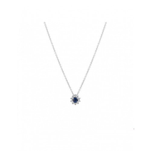 WITGOUDEN COLLIER MET SAFFIER EN 0.06CRT SI DIAMANT